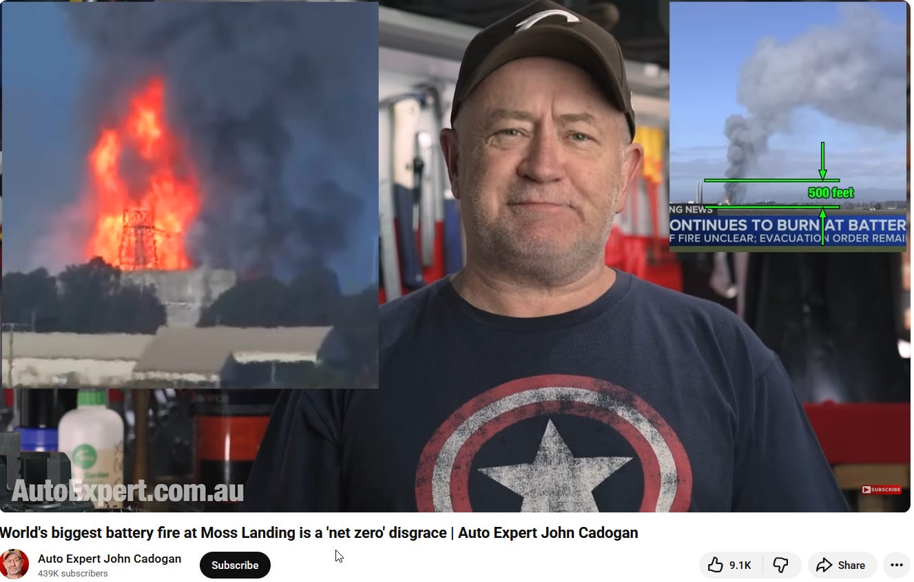 Source: youtube: world’s biggest battery fire at Moss Landing is a ‘net zero’ disgrace