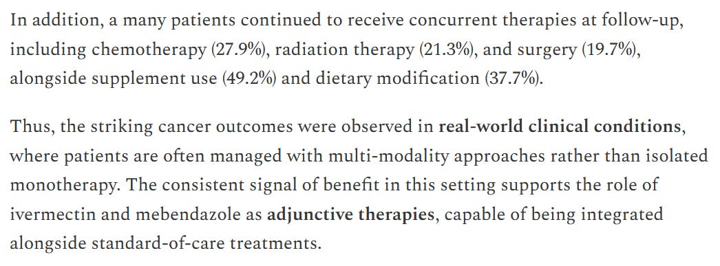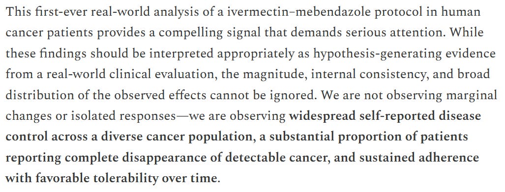 Cancer Patients ~ Largest Real-World Analysis of Ivermectin + Mebendazole ~ Shows 84.4% «Clinical Benefit»