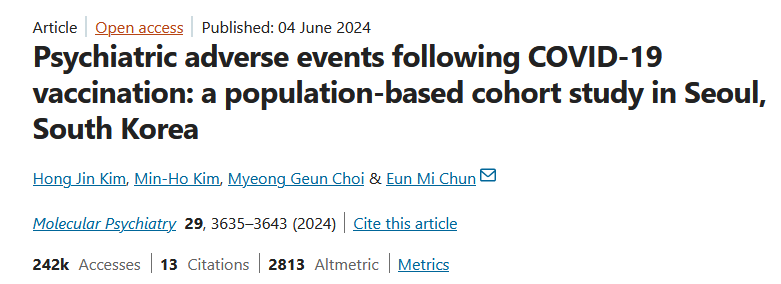 Below is the original article about Psychiatric Adverse Events after COVID-19 vaccinations from South Korea.