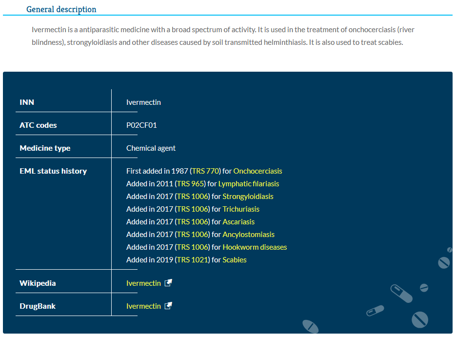 The WHO electronic Essential Medicines List was last updated in 2019. It has NOT been updated ~ even after the COVID Carnage Event, which began in 2020 and continues to this day ~ 18 OCT 2025.