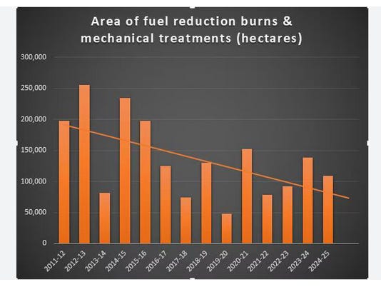 As per this graph below ~ the money certainly wasn’t invested in fuel reduction burns.