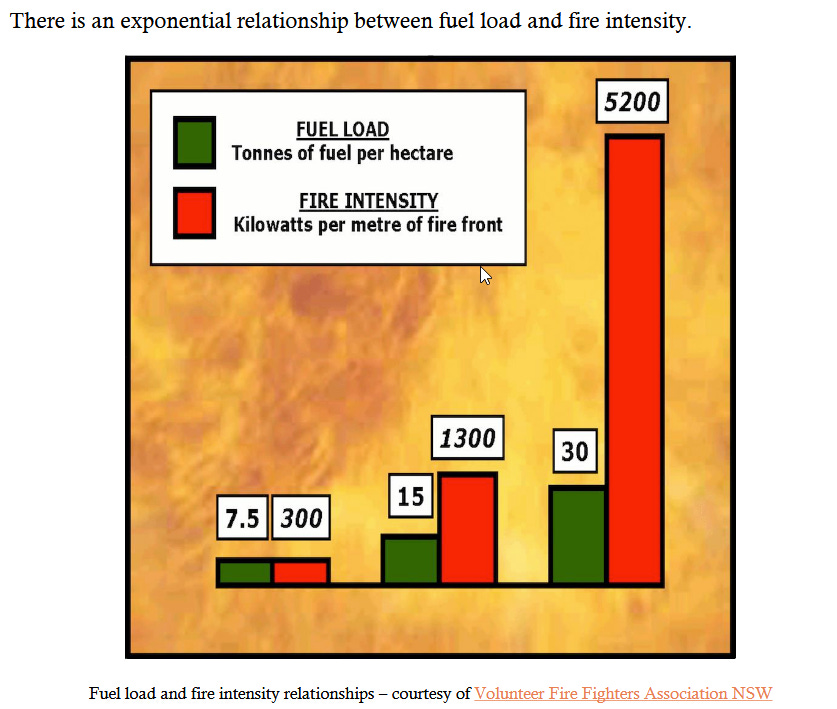 As you can see, a doubling of a fuel load of 15 tonnes/hectare = 30 tonnes/hectare.