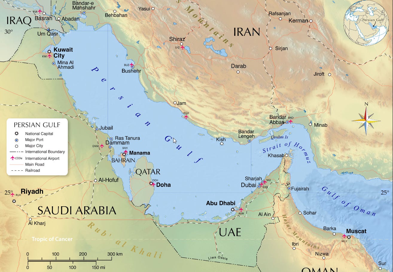 2. Make the point ~ continued conflict around the Strait of Hormuz PLUS escalation because of the proposed US counter-blockade east of the Gulf of Oman.
