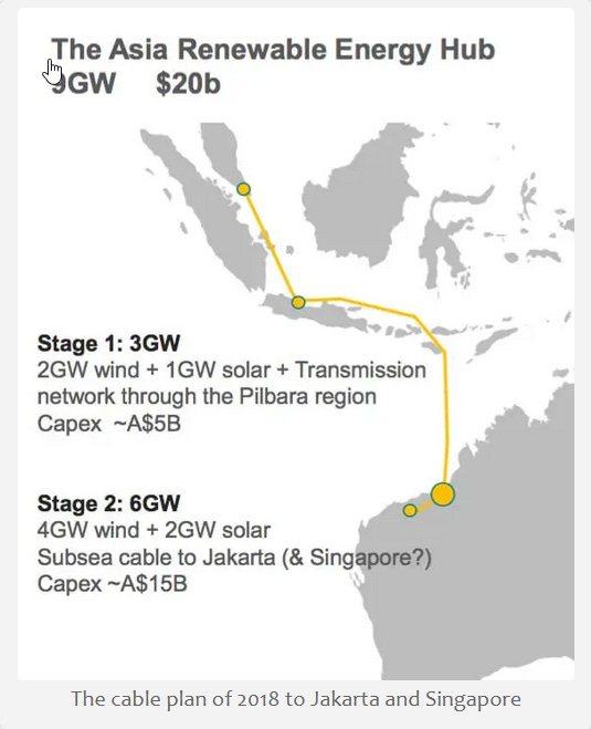 « Once pitched as the largest renewable project in the world — the fantasy is that 1,753 wind turbines, and nearly 11,000 megawatts of solar power will fill 6,500 square kilometers of the Pilbara in Northwest Western Australia.»