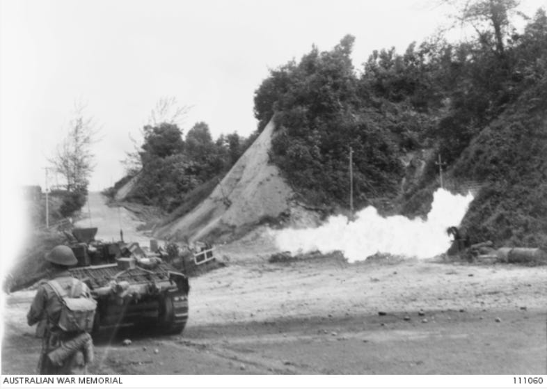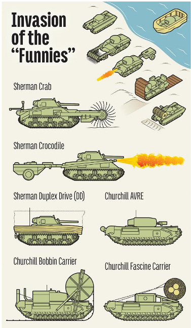 In 1945, flame-throwing tanks in World War II for bunker busting.