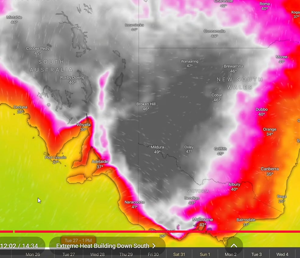 Source: cyclonesOZ - heatwave forecast for Tuesday 27 JAN 2026 - video ~ 11 min mark