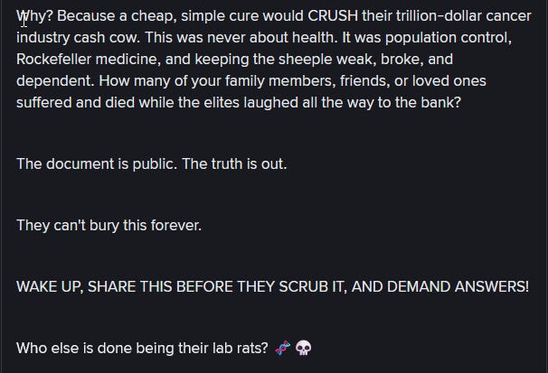 « There was lots of motivations to hide uh possibly effective cancer treatments that were non-patentable and cheap.