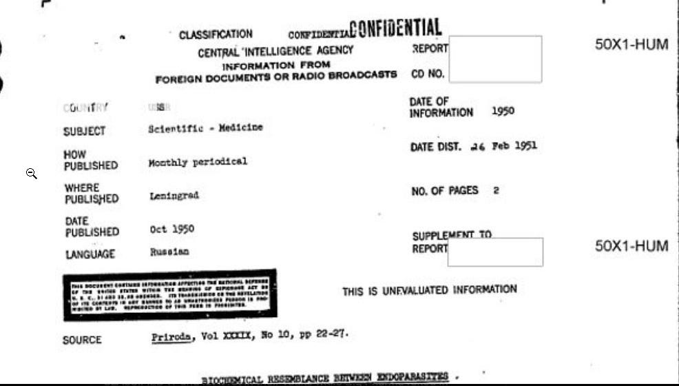 Unclassified in 2011 ~ CIA Discover Soviet Success in Cancer Research