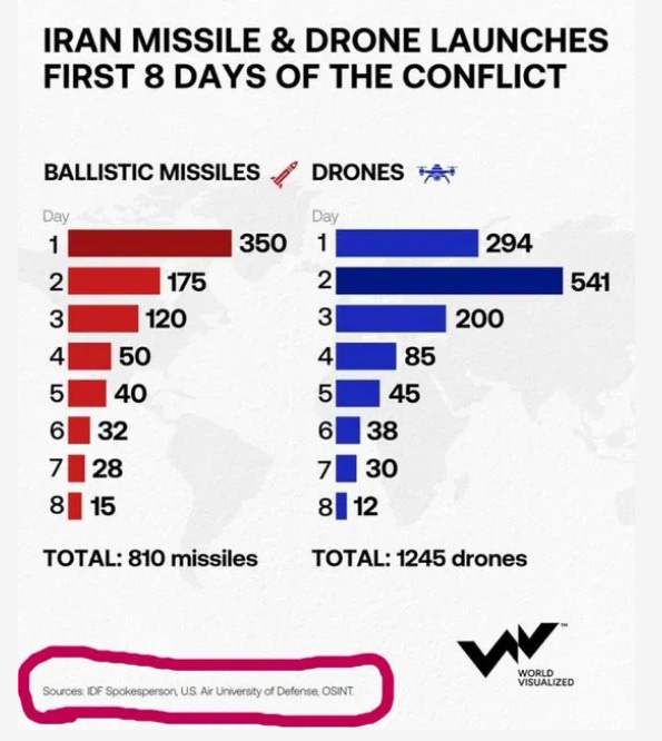 According to Simplicius, this graphic below, allegedly from IDF sources, indicates that the significant drop in Iranian missile & drone attacks, is because Iran is somehow «running low» on offensive ordinance.