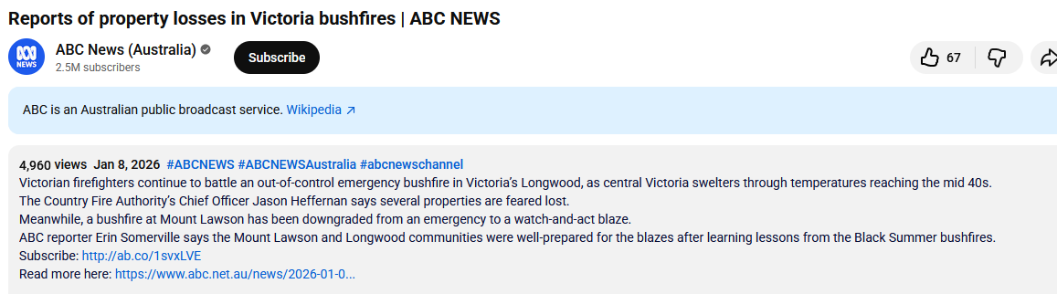 ABC TV News broadcast this report below from Wodonga, VIC this morning ~ Thursday 8th January 2026.
