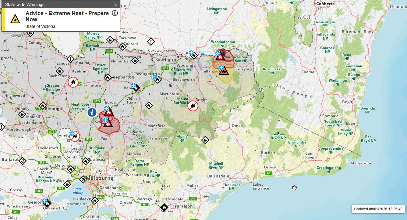 VIC Heat & Bushfire Warnings ~ 08 JAN 2026