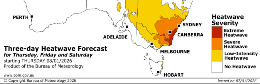 This heatwave map from the BoM highlights the weather severity/