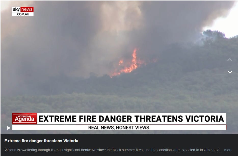 This Sky News report at 12:35 PM Thursday, 8th January 2026 ~ extreme fire danger in Victoria!
