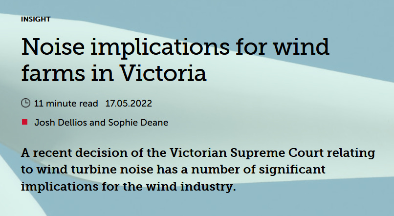 « The loss of amenity for a surrounding landowner due to wind turbine noise can form the basis of a successful claim in private nuisance. This is the first time a successful claim has been made on these grounds against a wind energy facility operator in Australia.»