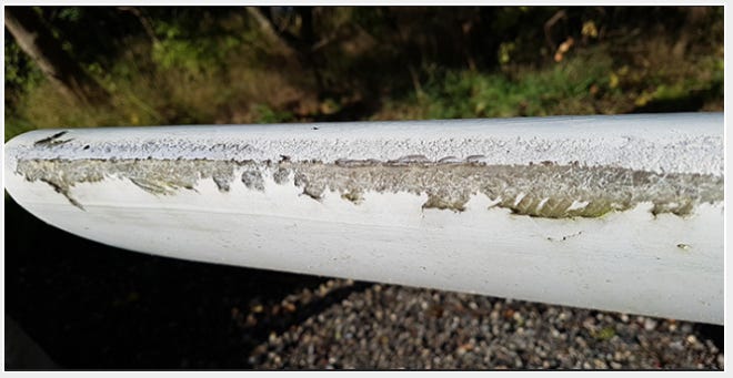 Damaged turbine blade with protective coating chipped and flaking - exposing bisphenol layer